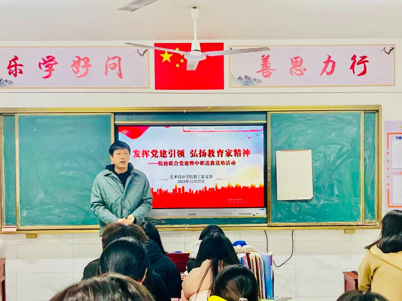 活动现场,党员教师将二十大精神融入教学实践,服装设计专业高琛老师以“传统纹样与现代设计”为主题,通过非遗扎染技艺展示,引导员工理解文化传承与创新发展的辩证关系。教学研讨环节,岳阳市优秀教师魏荣辉以“项目化教学在艺术课堂中的实践应用”为题,开展沉浸式工作坊,为中职公司教师带来全新教学理念。正如柴彬彬经理在座谈会上所言:“此次共建既是党建工作的延伸触角,更是践行教育公平的生动实践,我们要让党建的红色引擎驱动教育资源共享的齿轮持续转动。”